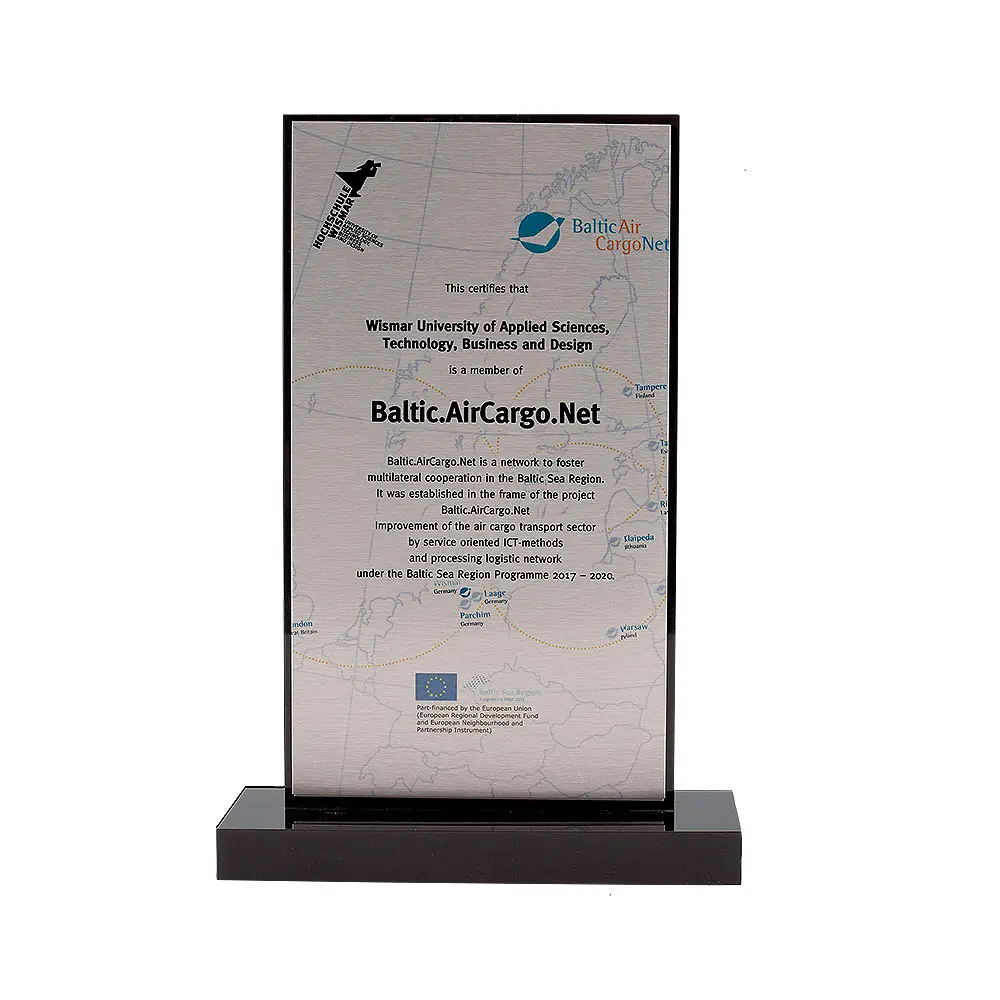 Fein geschliffene Aluminiumplatte auf Trophäe aus schwarzem Acrylglas.