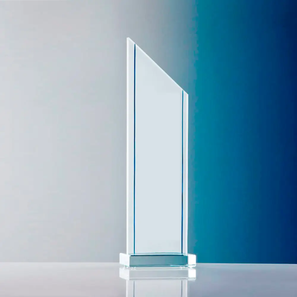 OptiWhite Glaspokal – Aprilia Award – Rückseitig komplett sandgestrahlt, die Gravur erfolgt auf der Vorderseite mit einer Farbauslegung. Ein toller Award für Ihre Siegerehrung auf einem 19 mm starkem Sockel.