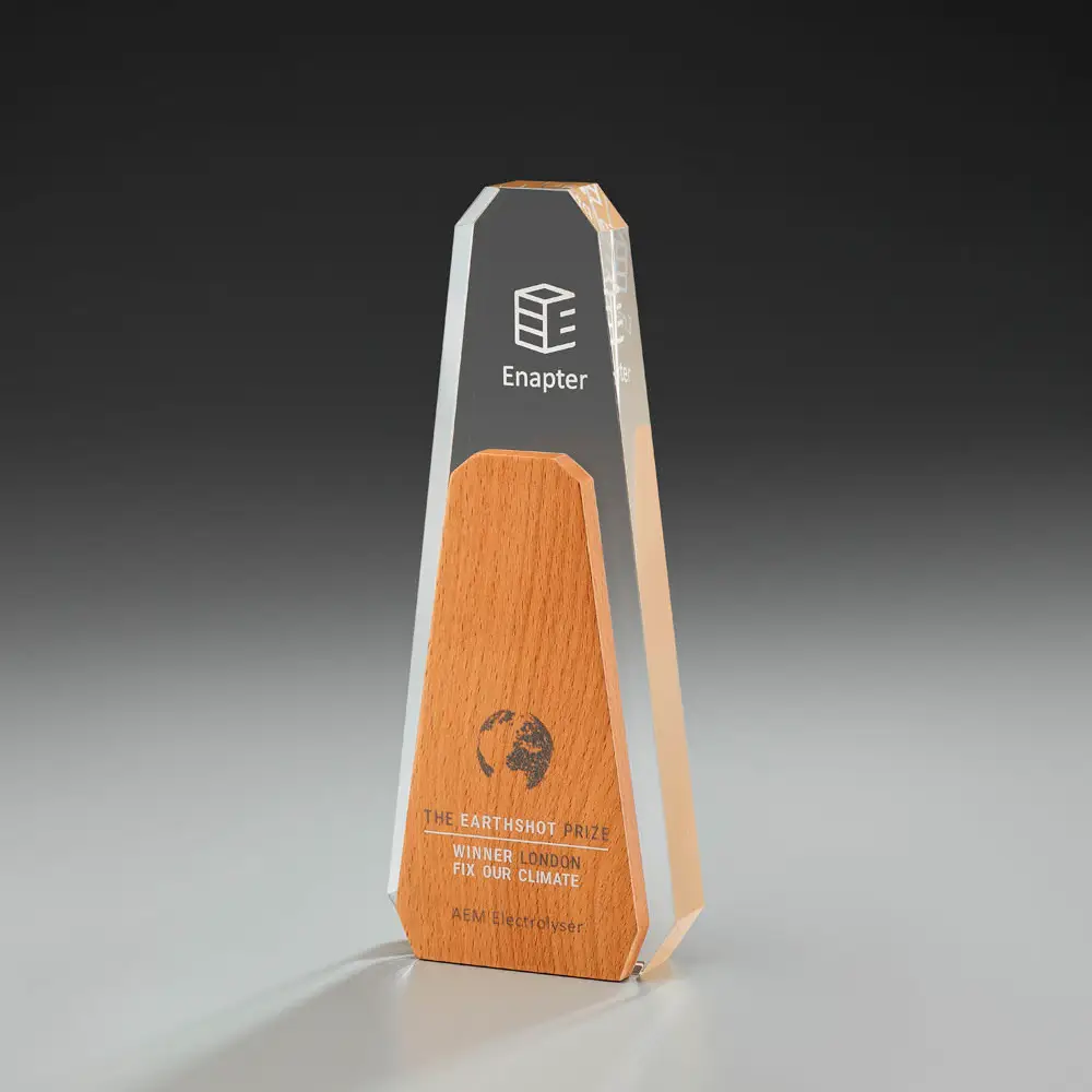 Aspen Award – Zeitlos aber modernes Design strahlt der freistehnde Apsen Award mit seiner Kombination aus Kristallglas und Holz