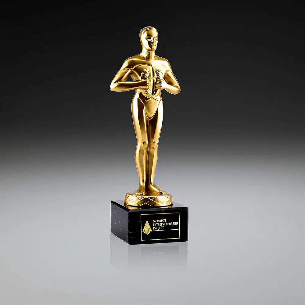 Schlichtweg die klassische Figur: Classic Achievement Award in der Matt Edition – Figuren-Award aus massivem Metallguß, in 3 Größen lieferbar und matt goldfarbig lackiert auf einem Marmorsockel.