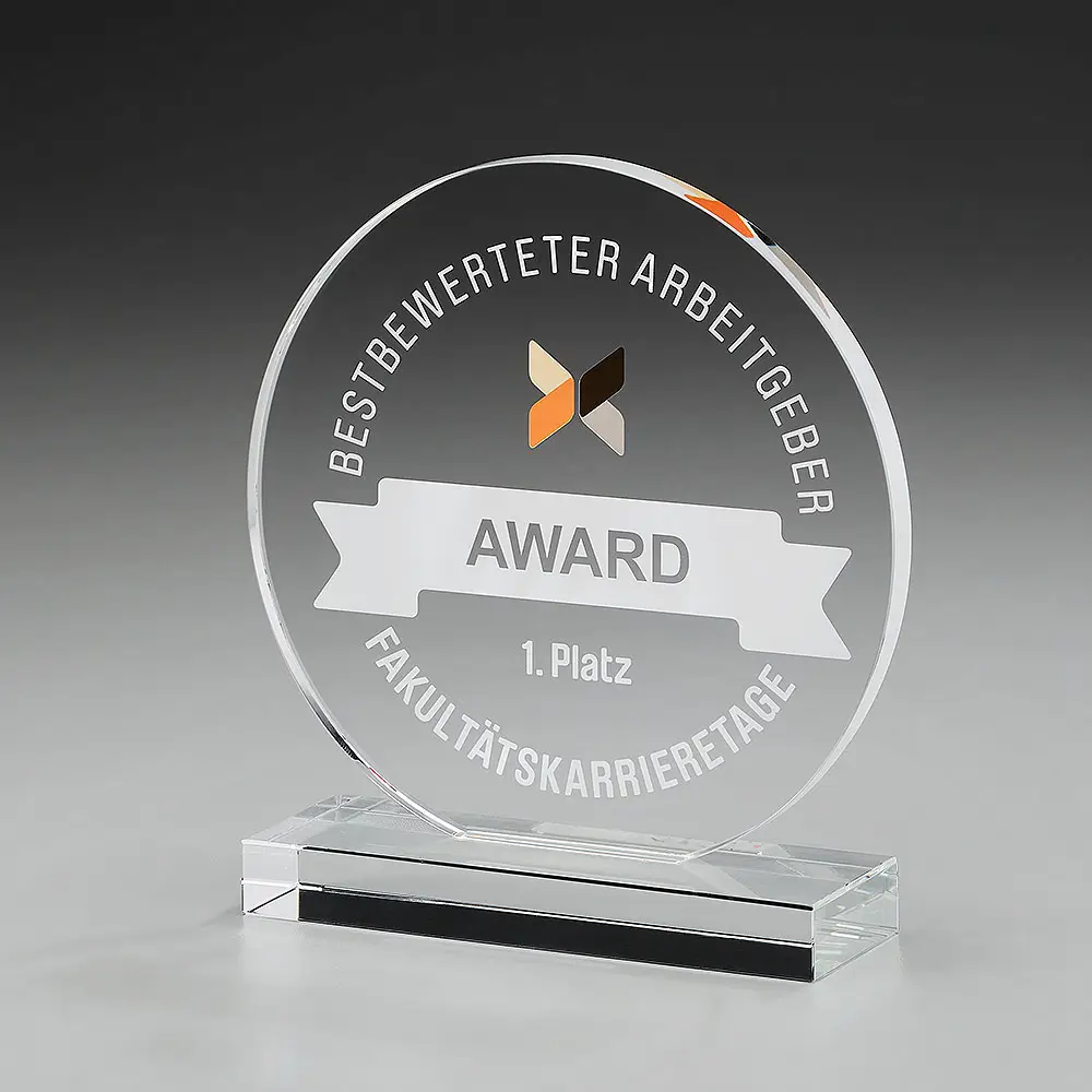 Besonders geschätzt wird der großzügige Gravurbereich, der viel Platz für individuelle Texte, Logos oder Widmungen bietet. Dadurch eignet sich der Award ideal für Firmenauszeichnungen, Jubiläen, sportliche Ehrungen oder besondere Meilensteine. Seine runde Form symbolisiert Vollkommenheit, Harmonie und Erfolg – Eigenschaften, die jede Auszeichnung noch bedeutungsvoller machen.