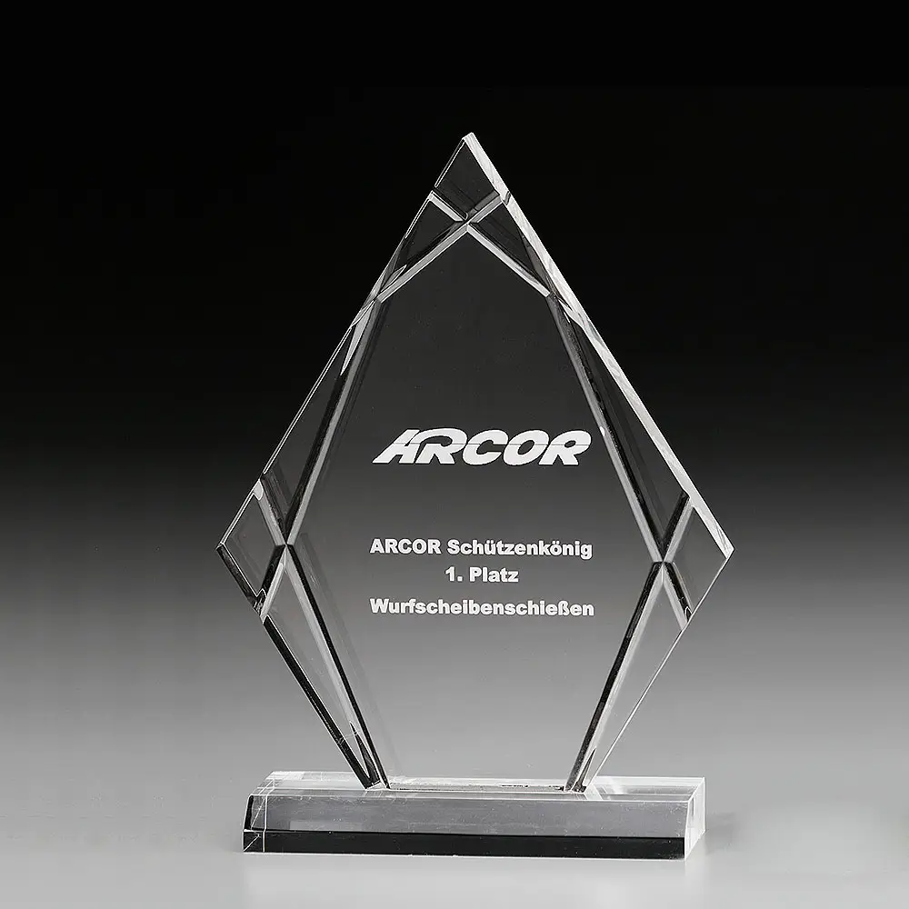 Effektvolle Zierfräsungen, hochglanzpoliert, geben dieser Trophäe ein extraordinäres Design. 18 mm starkes Acrylglas hochwertig Verarbeitet.