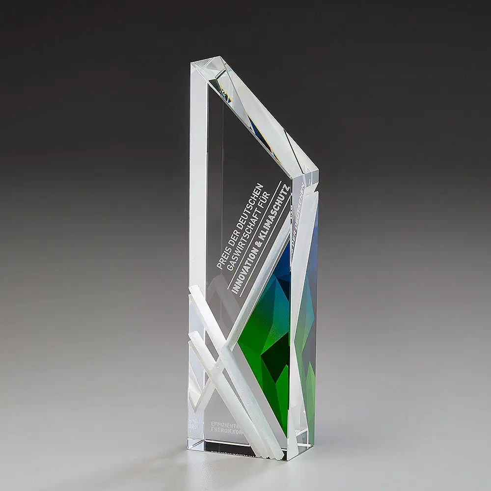 Perception Kristallglas Award – massives Glas in einer Bearbeitung auf höchstem Niveau: der richtige Award für besondere Leistungen des Empfängers. Award plus modernes Design und eine besondere Bearbeitungsweise unterstreicht die Dynamik dieser Kristallglas Trophäe. Die Vertiefungen werden von Hand in das Kristallglas gefräst, so ist jeder Award ein Unikat.