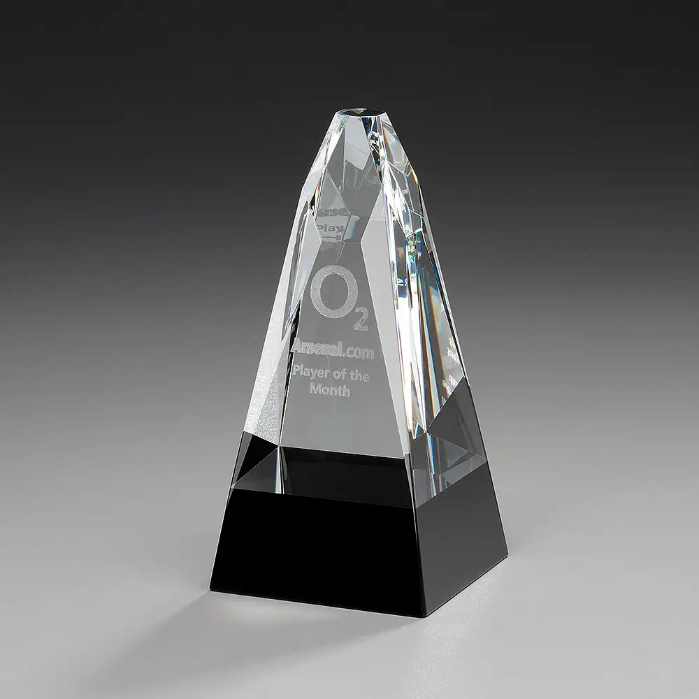 Pyramidenförmig mit elegantem Facettenschliff ist dieser massive Kristallglas-Award eine Option für höchste Ehrungen.