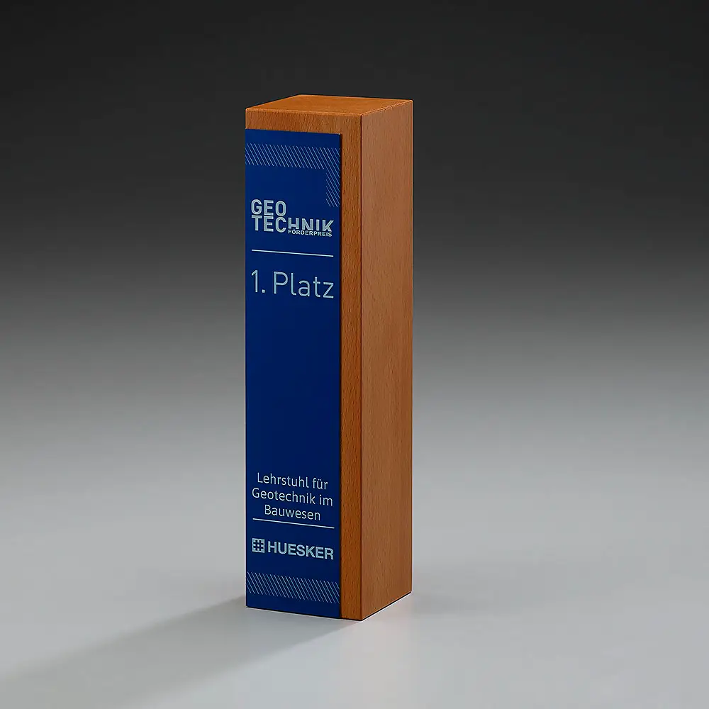 Timber Plate – Massiver Holz-Award aus Buchenholz – Ein sehr schöner Award und das Holz stammt nachhaltiger Forstwirtschaft – Massives Holz mit einer blau eloxierten Aluminiumauflage für Ihre individuelle Lasergravur.
