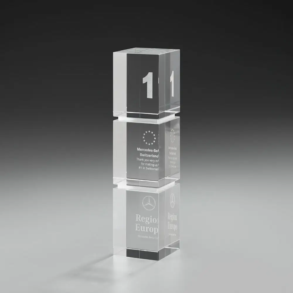 Triple Tower – Das Zusammenspiel aus drei klaren Kristallglas-Kubusen mit gefrosteten Verbindungselementen bietet genügend Platz für ein spannendes Design.
