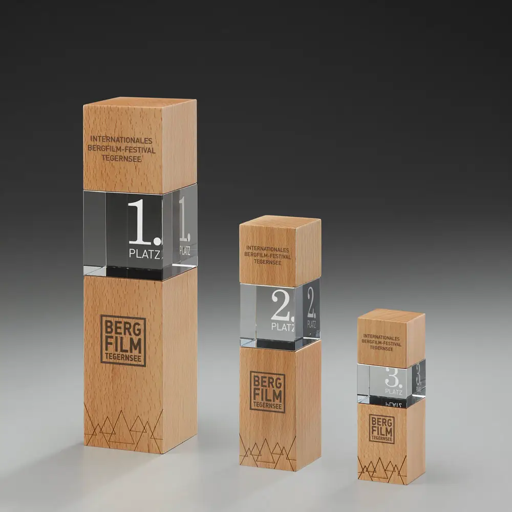 Dank der drei verfügbaren Größen lässt sich dIe Trophäe ideal als abgestuftes Set für verschiedene Kategorien oder Platzierungen einsetzen. Die klare Glasfläche bietet großzügigen Raum für individuelle Gravuren, Logos oder Widmungen, während das massive Buchenholz dem Award Stabilität und eine natürliche, moderne Ausstrahlung verleiht.
